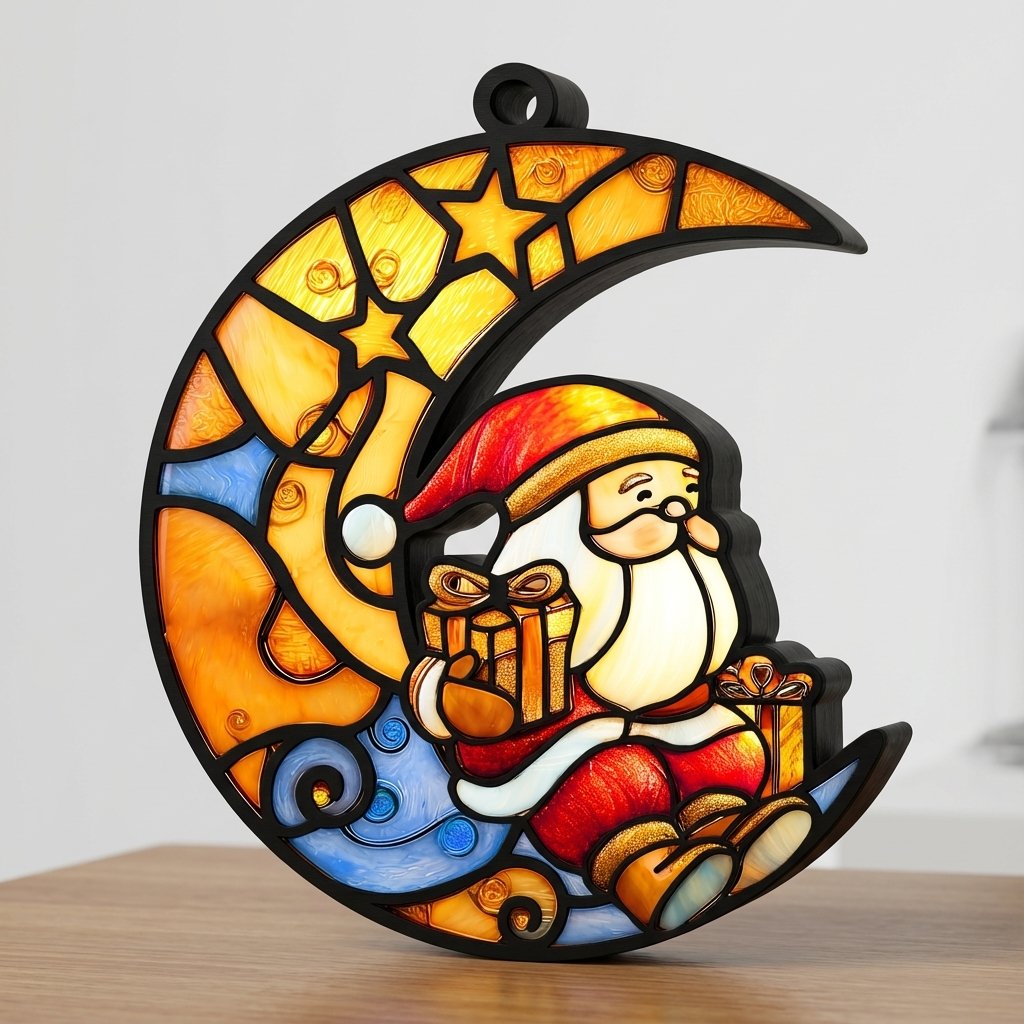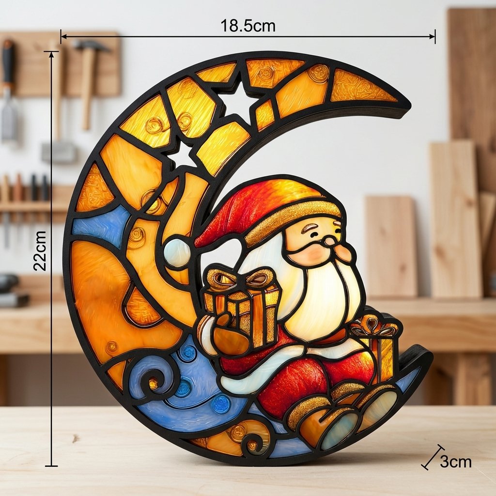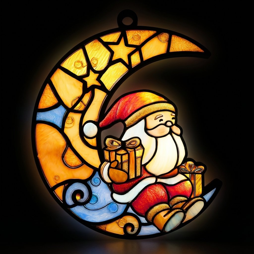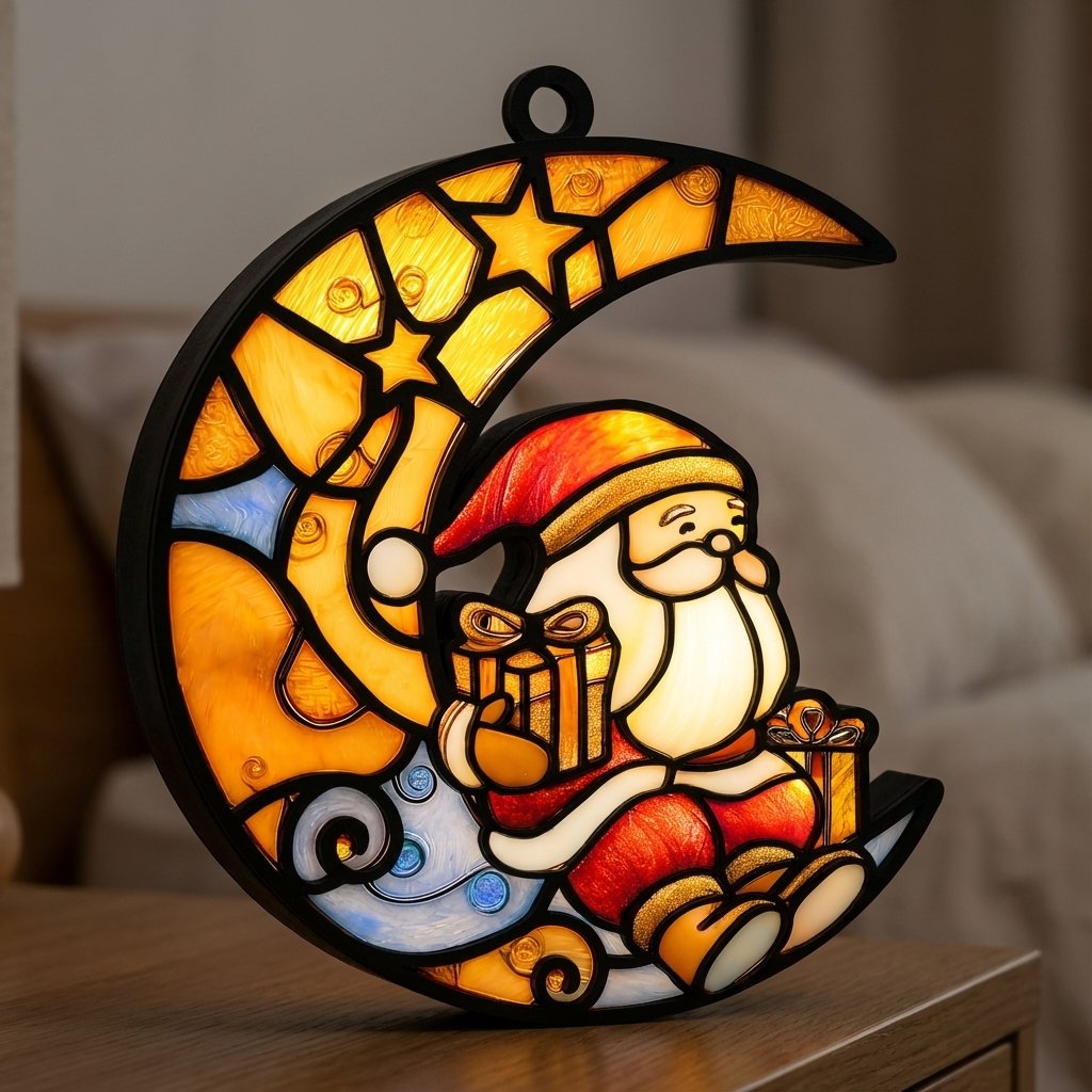 Add a warm and festive touch to your decor with this handcrafted CHRISTMAS SANTA LED Light Box Ornament 3D, beautifully designed with a stained-glass–inspired holiday theme. Featuring a cozy, Santa cheerful character resting on a glowing crescent moon, this light box emits a soft, inviting light that instantly enhances any seasonal display or living space.