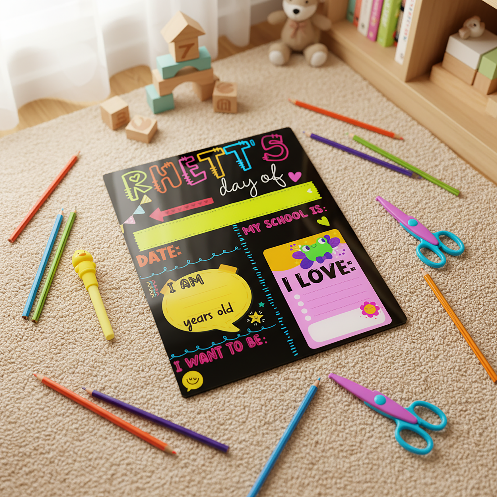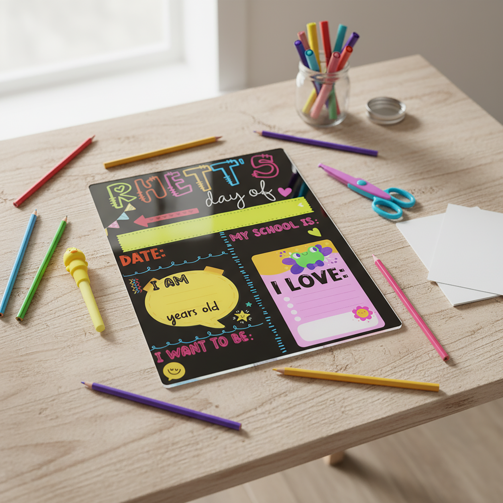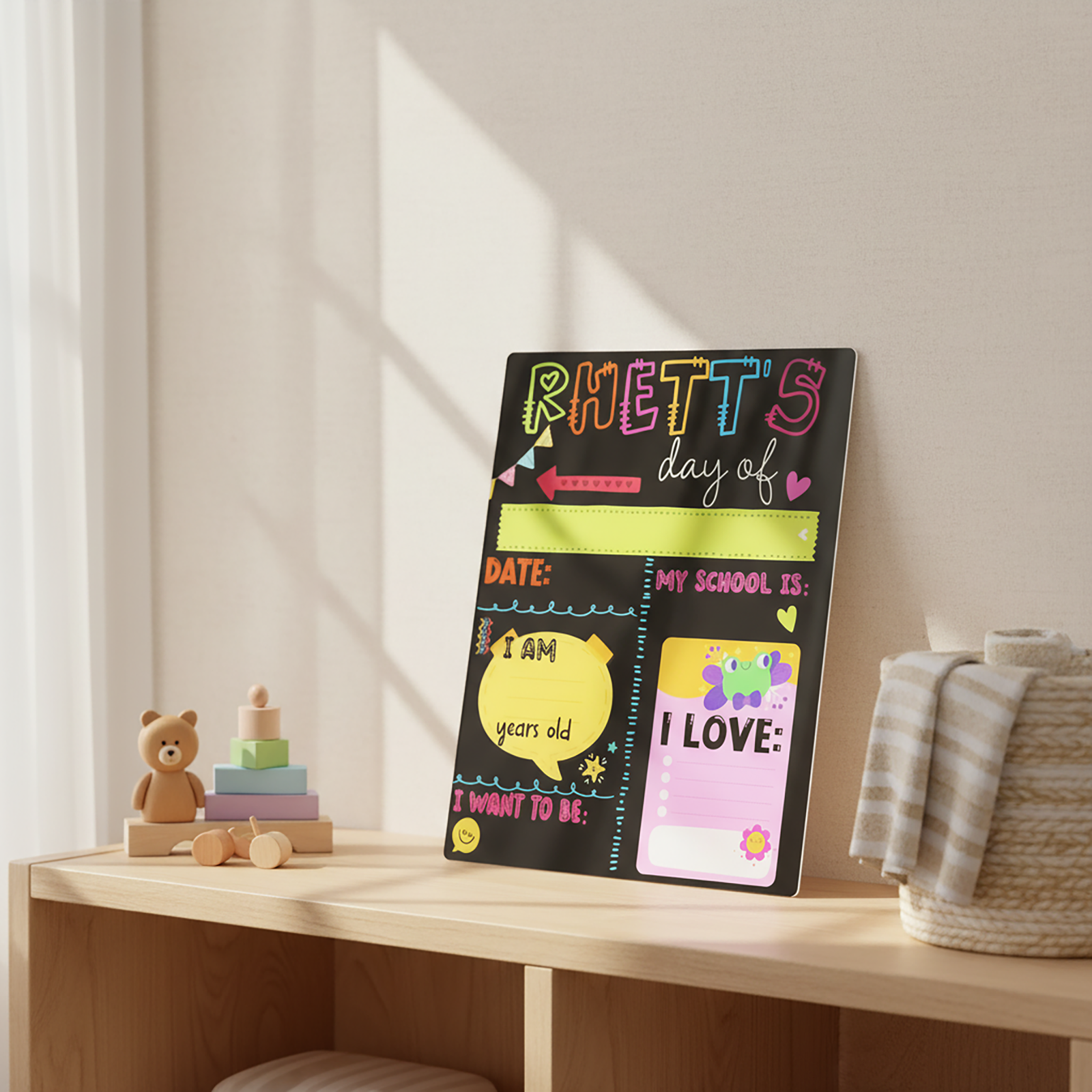 Whether used at home, in the classroom, or as a photo prop, this personalized acrylic school sign helps families capture unforgettable moments and create lasting memories.