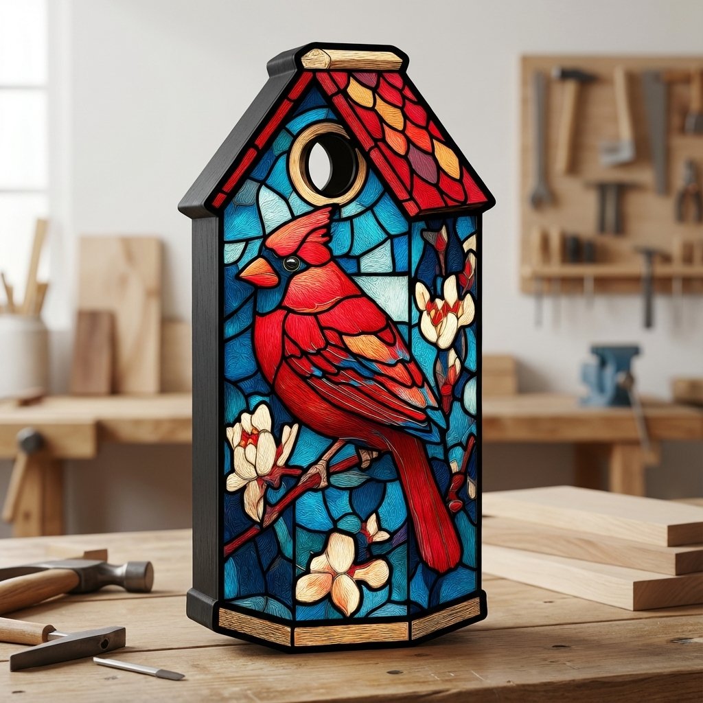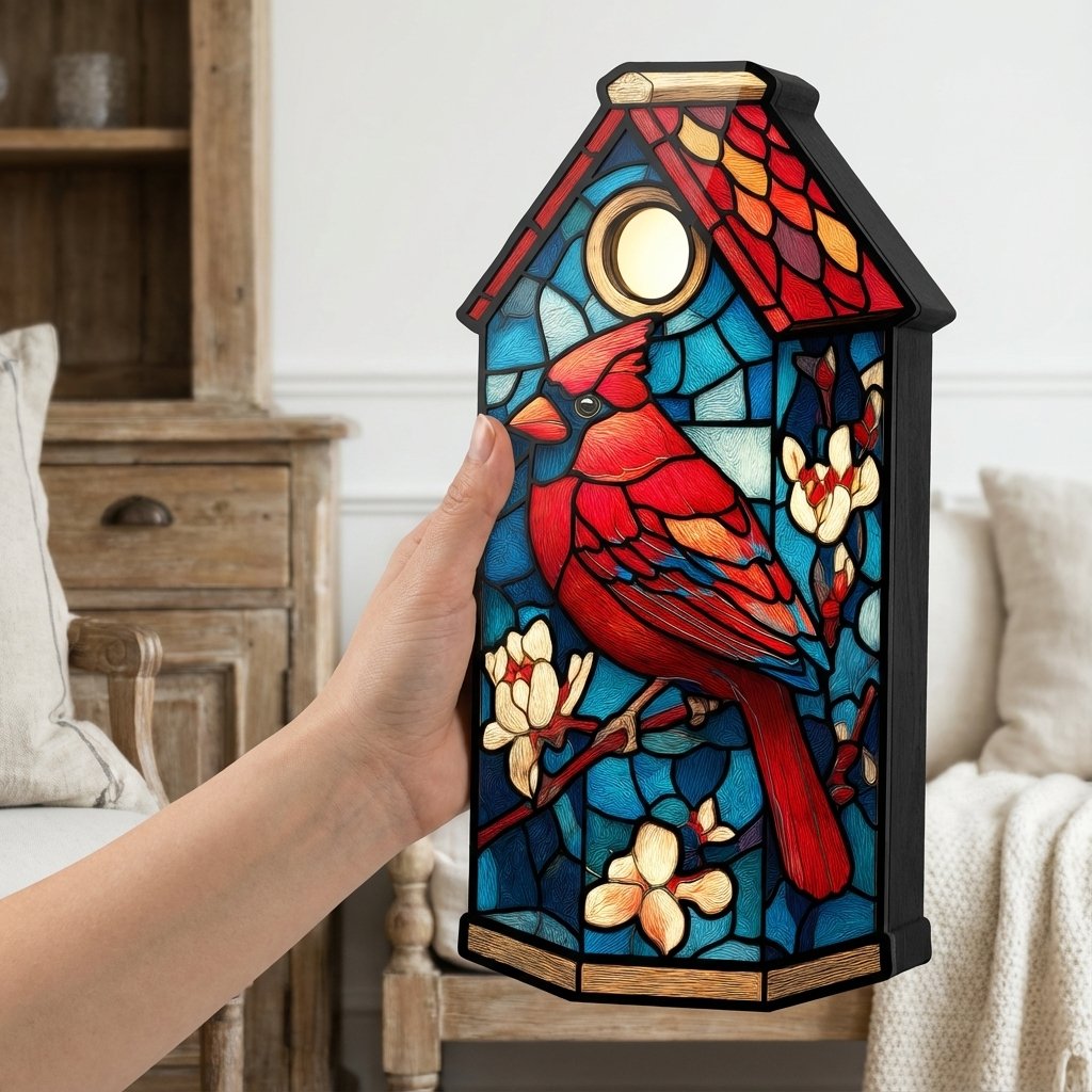 Handcrafted Stained-Glass–Style LED Light Box Cadinal